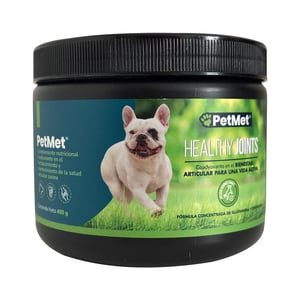 SKU 107568Suplemento alimenticio en polvo elaborado con ingredientes de origen animal destinado a proteger los tejidos conectivos y revertir el daño articular de perros con displasia, problemas de movilidad en patas, rodillas, cadera y codos. Petmet Healthy Joints está formulado para suplementar a los perros con glucosamina y condroitina de la más alta calidad . Se ha encontrado que estas sustancias ayudan al mantenimiento de la estructura y función normal de las articulaciones, ayuda a retrasar el proceso de deterioro articular y a prevenir, corregir y tratar problemas osteoarticulares.