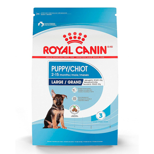 Royal Canin para cachorros de raza grande es alimento para perros desde los 2 hasta los 15 meses de edad. El alimento está formulado con una combinación exclusiva de nutrientes que contribuyen a la salud digestiva y a una flora intestinal balanceada y propicia heces de buena calidad. Con una mezcla exclusiva de antioxidantes y minerales que apoyan el desarrollo de su sistema inmunológico y mantiene su cuerpo creciendo fuerte.