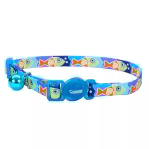 Safe Cat Collar con Broche de Seguridad Azul Diseño Peces de Colores para Gato, 1 Pieza