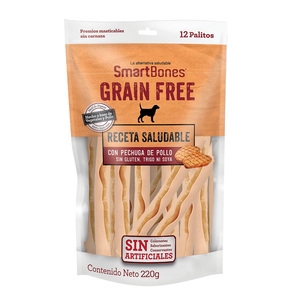 Los masticables de SmartBones Libre de Granos son una excelente alternativa saludable para perros con alergias al gluten, trigo o soya. Con su diseño en forma de stick ayudan a combatir el aburrimiento mientras mantienen la salud de dientes y encías de tu mascota. Están elaborados a base de vegetales y pechuga de pollo, lo que los hace fáciles de digerir y con una textura que a tu perro le encantará.
