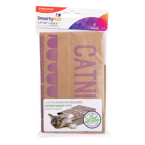 SmartyKat trae una línea de juguetes Stimulation que estimulan física y mentalmente a tu felino. Uno de estos juguetes es el set de cuevas de papel que amará tu gato. Este set contiene dos bolsas con infusión de catnip, que con cada toque de tu gato liberan su aroma. Estas bolsas están hechas de materiales reciclables; además, son estimulantes para que tu gato se divierta, se esconda y juegue.