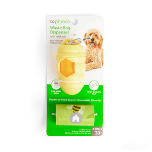 El dispensador para bolsas de desechos diseño panal de abejas de Sophresh está listo para ayudarte a realizar limpiezas rápidas y sin complicaciones. El dispensador está fabricado con materiales de calidad y cuenta con un mosquetón que puede engancharse convenientemente a correas, bolsas y más, proporcionando un cómodo acceso a las bolsas de desechos cuando la naturaleza llama.