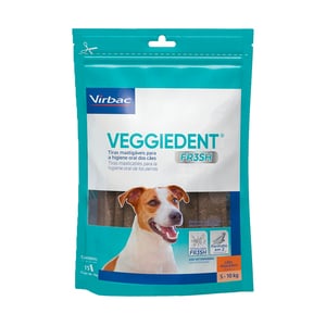 - Veggiedent de Virbac son masticables dentales hechos 100% con material vegetal que apoyan la limpieza mecánica de las piezas dentales y las encías.