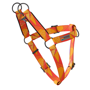 Los diseños de Wingo Outdoors están inspirados en la naturaleza y la vida al aire libre, creando así mucho más que un simple accesorio. Este arnés presenta un estampado de mosaico en tonos naranjas y amarillos que te recordará a las llamas de una fogata. En la parte superior, incluye cintas reflectantes que te permiten localizar a tu perro fácilmente en la noche o en condiciones de poca luz. Además, incorpora un broche Mojave Hexa Duraflex que, a diferencia de otros broches, lo hace más duradero y seguro para su uso al aire libre.