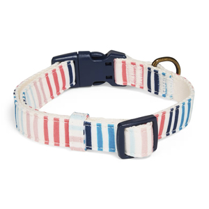 SKU 147845Confeccionado a partir de botellas recicladas, este collar de patrón de rayas multicolores con broche es el accesorio perfecto para tu mejor amigo. Cuenta con una argolla en forma de D para colocar su placa de identificación y un broche de seguridad de plástico que facilita su colocación. Deja que tu compañero luzca increíble mientras contribuye al cuidado del medio ambiente con este collar único.