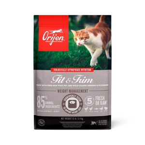 Nutre a tu felino como lo haría la naturaleza y ayúdalo a alcanzar un peso saludable con ORIJEN. Elaborado con 85% ingredientes de origen animal y 15% frutas y vegetales, ORIJEN Fit & Trim ha sido diseñado por expertos para proporcionarle a tu gato una nutrición biológicamente apropiada al mismo tiempo que lo ayuda a perder peso. Comprobado científicamente que ayuda en la pérdida de peso, también cuenta con ingredientes ricos en antioxidantes y omegas que apoyarán su sistema inmune y la salud de su piel y pelo.