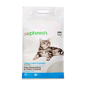 La arena de sílice absorbente de Sophresh es ideal para apoyarte a superar los principales desafíos y desventajas de la arena convencional, su tecnología Odor Lock sella los malos olores, deshidrata las heces y ayuda a encapsular los líquidos en el fondo, ayudando a reducir su mantenimiento y extendiendo hasta por un mes el periodo para recambio completo del sustrato. Mantén tu casa con un aroma fresco, preocúpate menos por el arenero y pasa mas tiempo disfrutando de los buenos momentos con tu felino.