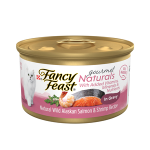 Fancy Feast Gourmet Naturals Alimento Húmedo Tipo Petit Filets para Gato Adulto Receta Salmón Salvaje y Camarón, 85 g