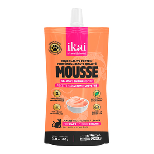 Los Premios Mousse Ikai son una deliciosa opción de alta calidad para tu gato, con textura cremosa y sabor a salmón con camarón. Están enriquecidos con ácidos grasos Omega-3 y 6, así como prebióticos que fortalecen el sistema inmunológico, proporcionando una proteína altamente digestible. Esto asegura un pelaje brillante y una piel saludable. Además, son de grado humano.