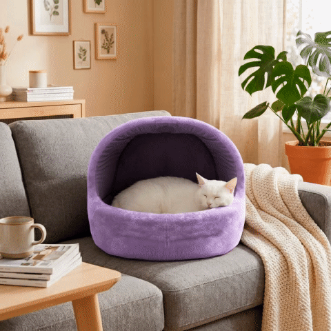 Ben & Mack Cama Tipo Cueva con Diseño Iglú Color Morado para Gato, Unitalla