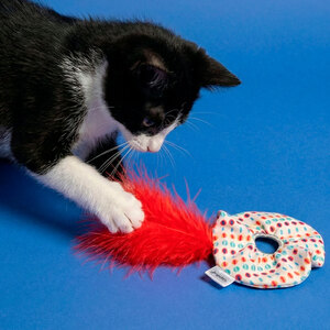 Los juguetes para gato de Jupiter están diseñados para aportar armonía a tu hogar y felicidad a tu felino. Este juguete es ideal para juegos de interacción como el lanzar, fomentando el ejercicio, la actividad física y fortaleciendo el vínculo con tu mascota. Además, su diseño y la divertida pluma incorporada despiertan la curiosidad de tu gato y estimulan tanto su actividad física como mental.