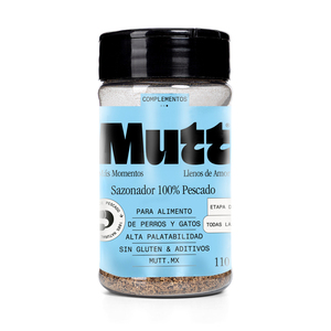 ¡Dales variedad a sus comidas con los sazonadores Mutt! Elaborados con ingredientes 100% naturales, libres de gluten y aditivos artificiales, los sazonadores en polvo Mutt son la opción ideal para aumentar el interés de mascotas con paladares exigentes por su comida o cuando simplemente quieres consentir a tu mejor amigo con un toque diferente de sabor. Encuéntralos en una variedad de recetas: cerdo, pavo, pescado, pollo y res.