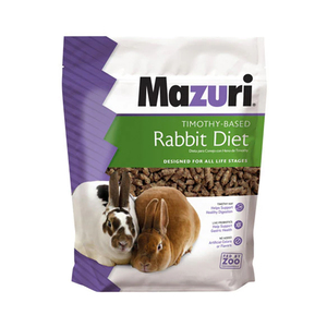 Mazuri Rabbit Diet es una dieta balanceada diseñada para todos todas las etapas de vida de los conejos. Elaborado a base de heno Timothy para promover la masticación, salud digestiva y una óptima nutrición. Además, proporciona una menor proteína y calcio para los conejos en todas las etapas de la vida. Esta dieta de conejo ofrece un gran sabor y fibra indispensable para los conejos. Está lleno de nutrientes y contiene extracto de yuca shidigera para reducir los olores de amoníaco.