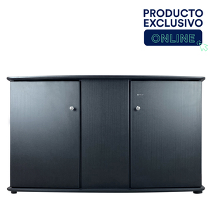 Gabinetes construidos material MDF resistente a salpicaduras eventuales de agua. Presentan un diseño sobrio y elegante con una estructura muy estable. La base y el soporte superior conservan el mismo diseño que el acuario copiando fielmente su forma. Está construido de modo muy robusto, con las uniones ocultas que garantizan soportar el peso del acuario por muchos años. Posee dos puertas abatibles con fuertes bisagras y elegantes manijas metálicas. El interior está separado en dos partes con una base para organizar cómodamente sus accesorios. El Gabinete es opcional, aunque la garantía del acuario está sujeta al uso del mismo. La información e imágenes mostradas en este sitio pueden ser modificadas sin previo aviso debido al continuo mejoramiento técnico de los productos por parte de los fabricantes.