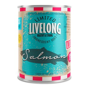 Livelong Healthy & Strong LID receta de salmón es un alimento húmedo 100 % natural para perros de todas las etapas de vida. Elaborado con ingredientes limitados, sin gluten, soya, maíz ni trigo, y con salmón como única fuente de proteína animal, es ideal para perros con sensibilidades alimentarias. Gracias a la alta calidad de sus ingredientes y su contenido de 95% carne, ofrece una nutrición completa y balanceada, al mismo tiempo que ofrece gran digestibilidad y palatabilidad.