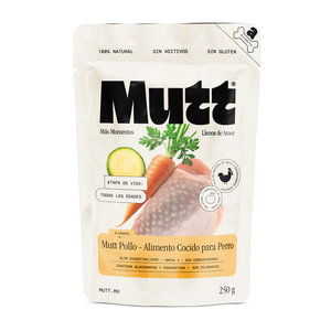 - Mutt Alimento Natural Cocido para Perro Todas las Etapas de Vida Receta Pollo, 250 g >PRODUCTOS>Perro>Alimento>Alimento Húmedo>Alimento Húmedo Todas las Edades>Mutt Alimento Natural Cocido para Perro Todas las Etapas de Vida Receta Pollo, 250 g
