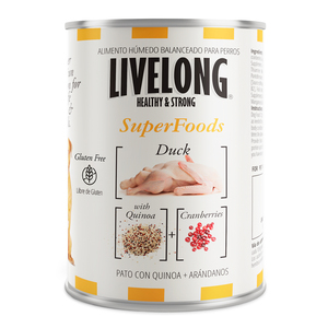 Livelong Healthy & Strong Superfoods Alimento Húmedo Natural para Perro Receta Pato y Quinoa, 354 g