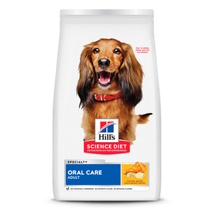 Las croquetas para perro Hills Science Diet para cuidado dental, son la mejor opción para tu mejor amigo. Este alimento seco premium está formulado con una innovadora tecnología de fibra entrelazada, clínicamente comprobada para reducir la acumulación de placa y sarro con cada bocado. Su acción de limpieza dental para perros ayuda a refrescar el aliento de tu mascota. Además de su beneficio en la salud bucal, está enriquecido con ácidos grasos Omega-6 y Vitamina E, esenciales para mantener un pelaje saludable y brillante. Una solución completa para el bienestar de tu perro, con la garantía de satisfacción de la marca Hill's Pet Nutrition. Hill's es la marca #1 recomendada por los veterinarios de los EUA.
