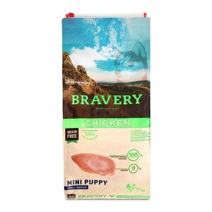 Mini Puppy de Bravery es alimento natural para cachorros de raza pequeña formulado con pollo como primer ingrediente, deliciosa y digestible carne, rica en vitaminas y ácidos grasos ideal para el correcto desarrollo de tu mejor amigo. Al ser una receta libre de granos y gluten es perfecta también para cachorros con sensibilidad alimentaria.