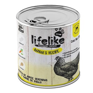 - Lifelike Mama's Recipe Alimento Húmedo para Perro Adulto Todas las Razas Receta Arroz y Verduras con Carne de Pollo, 370 g >MARCAS>Lifelike>Lifelike Mama's Recipe Alimento Húmedo para Perro Adulto Todas las Razas Receta Arroz y Verduras con Carne de Pollo, 370 g