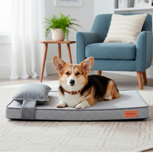 Pet2go Praga Cama Gris Rectangular Extendida con Almohada Removible para Perro, Chico
