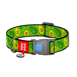 Waudog Nylon Collar Diseño de Aguacates con Broche de Plástico y Placa Tipo QR para Perro, Chico