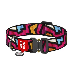 Waudog Nylon Collar Diseño de Grafiti con Broche de Plástico y Placa Tipo QR para Perro, Mediano