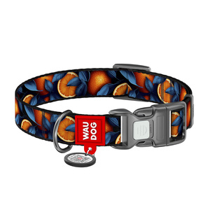 Waudog Nylon Collar Diseño de Naranjas con Broche y Placa Tipo QR para Perro, Chico