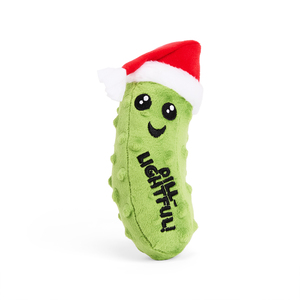 - Pepinillo navideño de peluche con estampado de la frase Dill-Lightful.