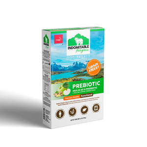Indomitable Prebiotic de manzana y jengibre, son deliciosas y saludables galletas funcionales libres de cereales, hechas con ingredientes super premium como la inulina, la cual funciona como un prebiótico y manzana-jengibre los cuales tienen beneficios antiinflamatorios mejorando así la salud intestinal de tu mejor amigo. Además, son horneadas lentamente en pequeñas cantidades para aumentar su crocancia. Perfectas para consentir a los perros de todas las razas.