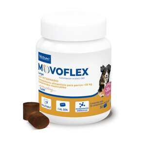 Para perros de más de 35 kg, administrar 1 comprimido masticable al día, por vía oral. Movoflex para razas grandes se puede administrar a largo plazo.