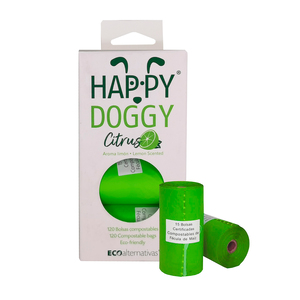Happy Doggy Bolsas Compostables con Aroma Cítrico para Desechos para Perro, 120 Bolsas