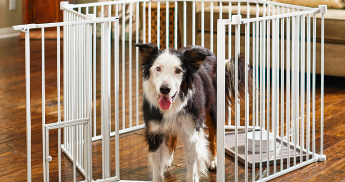 Para lograrlo los corrales, las puertas y rejas son excelentes herramientas para limitar el acceso de tu perrito a ciertos cuartos de la casa y evitar que cause o se haga daño.