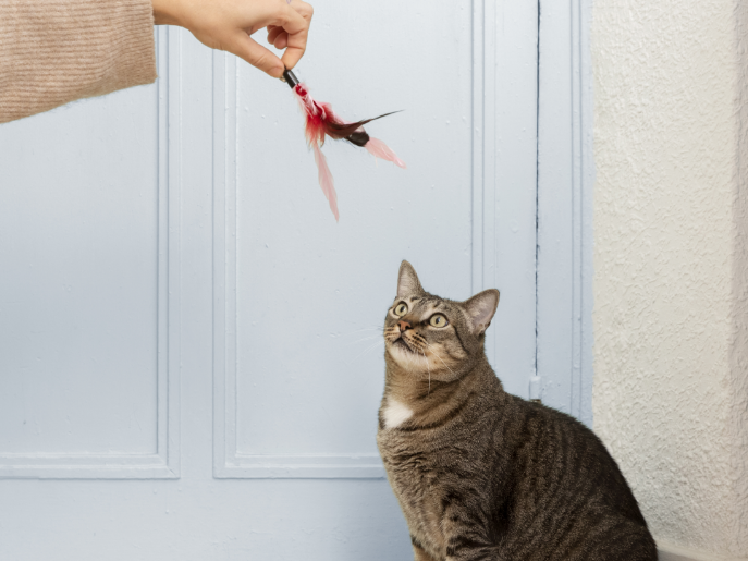 Como los seres sociales que son, los gatos necesitan interacción humana para una buena salud social. Para ello es esencial que puedas dedicar tiempo a jugar con él con ayuda de juguetes interactivos, como las varitas o los láseres, ya que así podrán pasar tiempo juntos y reforzar el lazo afectivo entre ustedes.