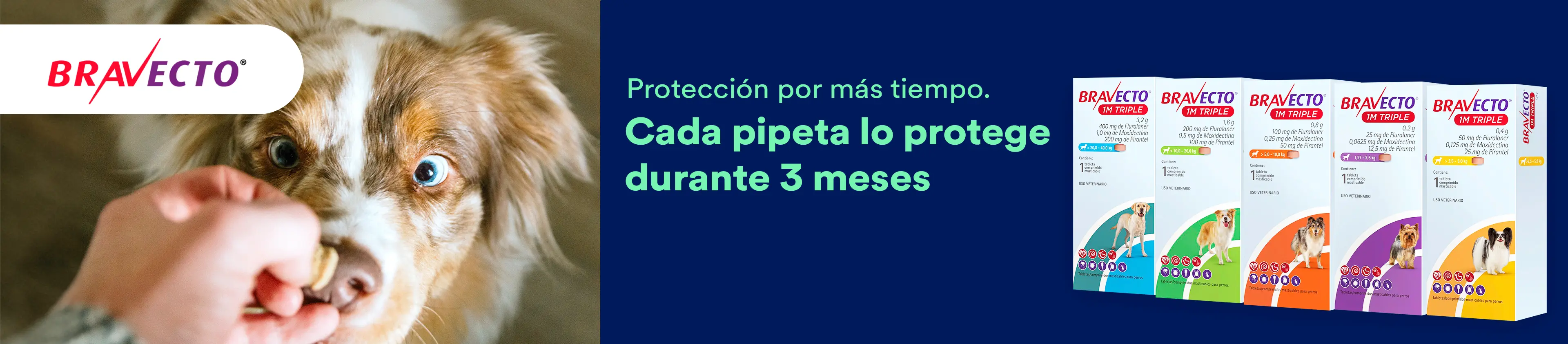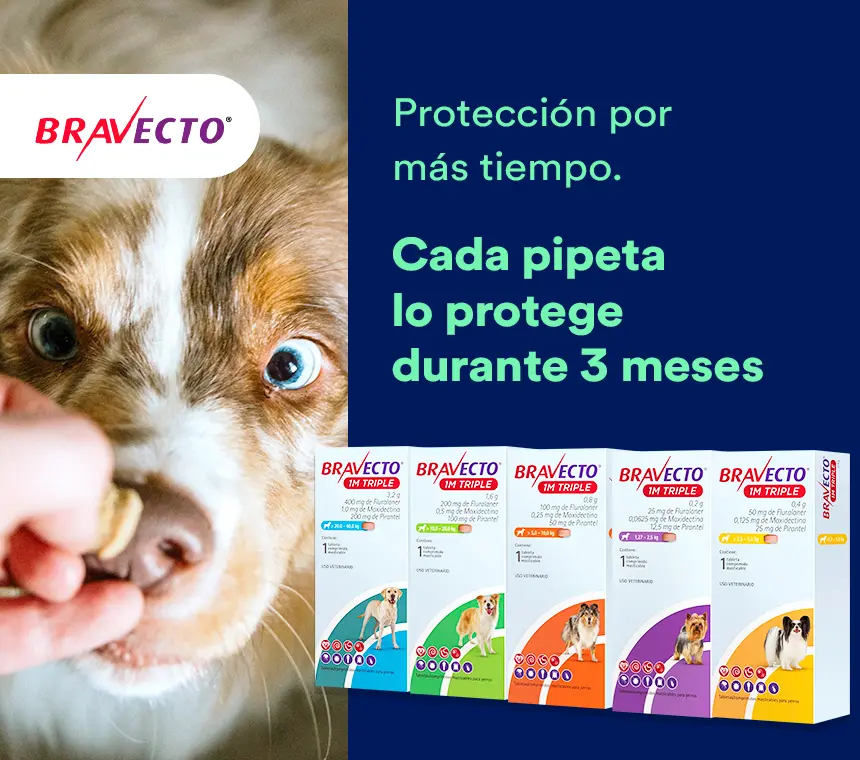 Bravecto 1M Triple es una tableta masticable de dosis única para perro